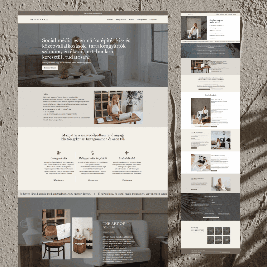 Célom, hogy a szerzett tapasztalataimat és kreatív szakértelmemet felhasználva segítsek neked bemutatni egyedi stílusodat és szakmai tevékenységedet a digitális világban.